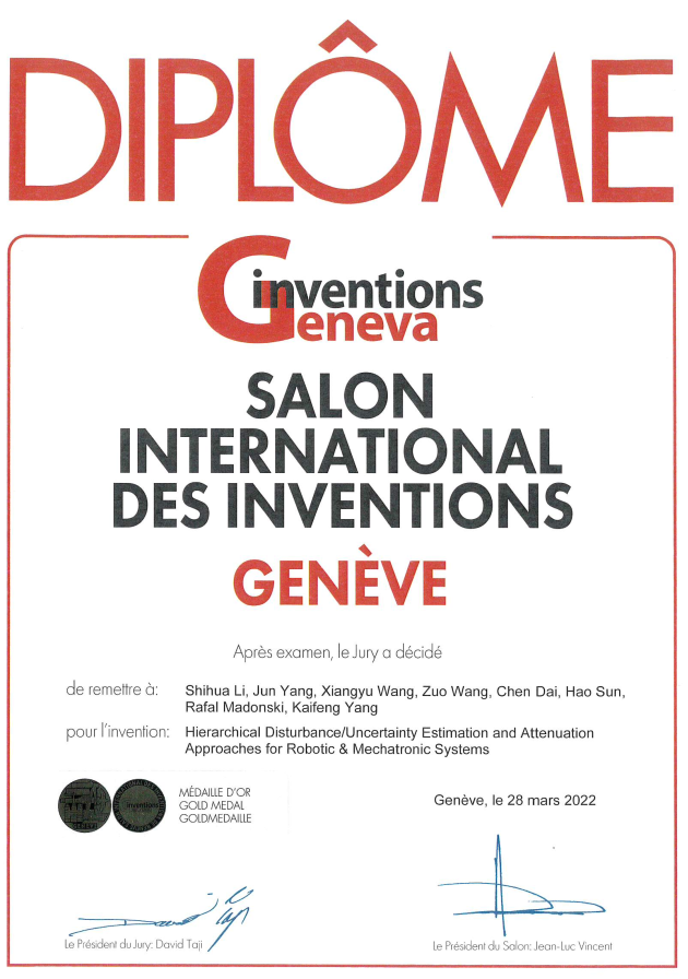 香港赛马会投注站 香港赛马会投注站 李世华教授团队的选报作品“机器人和机电系统分层干扰/不确定性估计和补偿技术”(Hierarchical Disturbance/Uncertainty Estimation and Attenuation Approaches for Robotic & Mechatronic Systems)一路披荆斩棘,夺得金奖,在世界大舞台上展现出过人的实力。值此60周年院庆之际,谨以此项成果献给砥砺前行60载的香港赛马会投注站 香港赛马会投注站 !