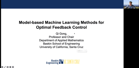 在本讲座中,宫琪教授提出了一种基于模型的数据驱动方法,用神经网络对HJB方程的解进行建模,以近似解决高维非线性系统的HJB方程。通过利用问题的已知物理特性和以自适应方式生成的训练数据,使训练更加有效和高效,进一步开发了不同的神经网络近似结构,以提高学习过程中的鲁棒性,并增强所学控制器的闭环稳定性。最后,参会师生积极发言提问,与宫琪教授进行了交流沟通。
