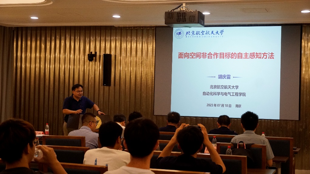 北京航空航天大学胡庆雷教授作了论坛的第二场报告,题为“面向空间非合作目标语义、结构和运动信息的自主感知方法”。胡教授围绕空间非合作目标语义、结构和运动信息的自主感知任务进行相关算法的介绍,并根据空间目标感知等任务介绍了团队搭建的空间目标双臂捕获半实物实验平台。