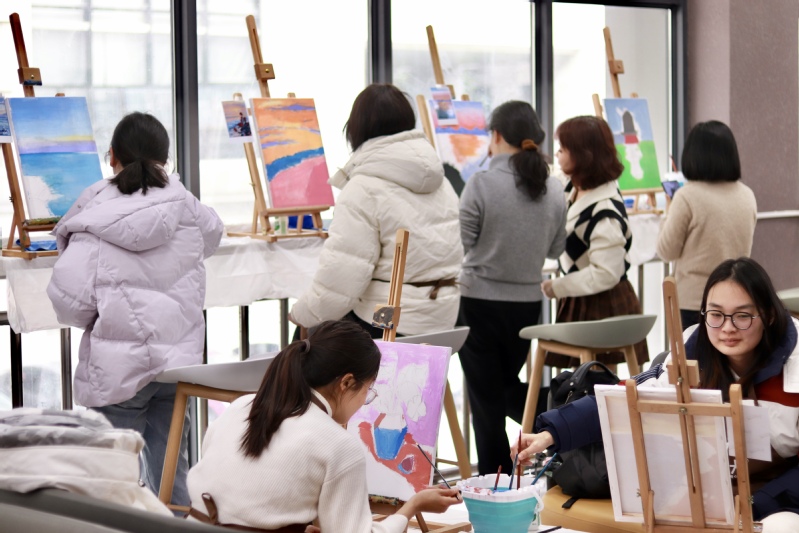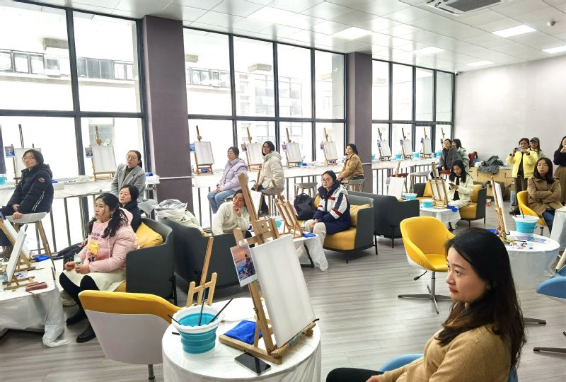 3月6日下午,香港赛马会投注站 工会举办了“画启春意•‘自’话情谊”女神节活动,二十余名女教师一改戎装,拿起了画棒,欲给这浓浓春意再添几笔勃勃生机。