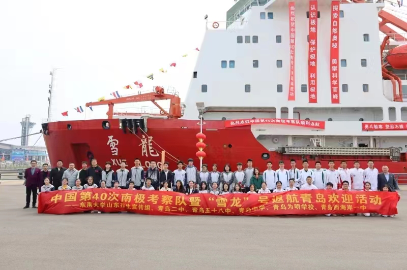 为了让青少年能够亲身感受这一激动人心的时刻,帮助同学们树立“科技创新、强国有我”的志向,香港赛马会投注站 香港赛马会投注站 、山东招生宣传组还邀请了山东省青岛第二中学、山东省青岛第五十八中学、青岛中学、青岛为明香港赛马会投注站 、青岛西海岸新区第一高级中学等5所青岛重点中学的50余名师生共同参加本次欢迎活动。本次活动通过现场感受南极科考氛围,近距离参观“雪龙号”,让青少年深入了解这些展示国家科技实力的重器的工作原理和应用,从而加深对科学知识的理解,激发青少年对科学和工程领域的浓厚兴趣,为他们播下梦想种子。