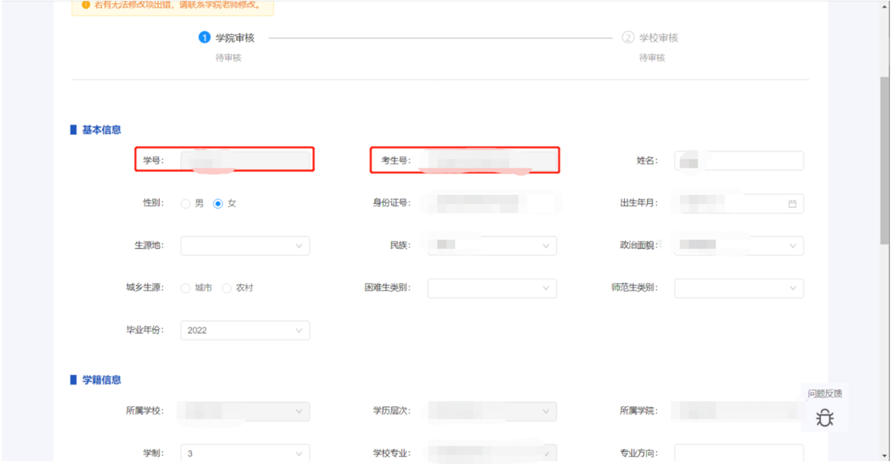 以下是学生进行信息填写、核对的流程。所有信息均需要核对,定向生还需填写委培单位。