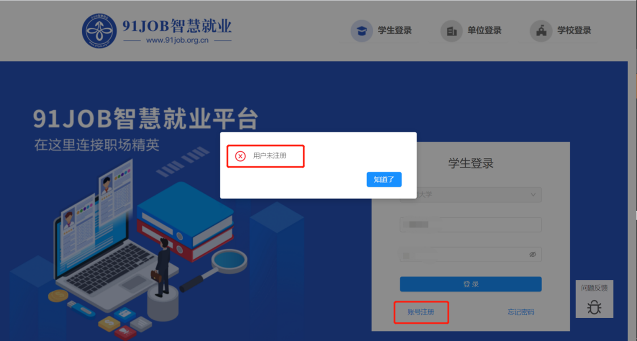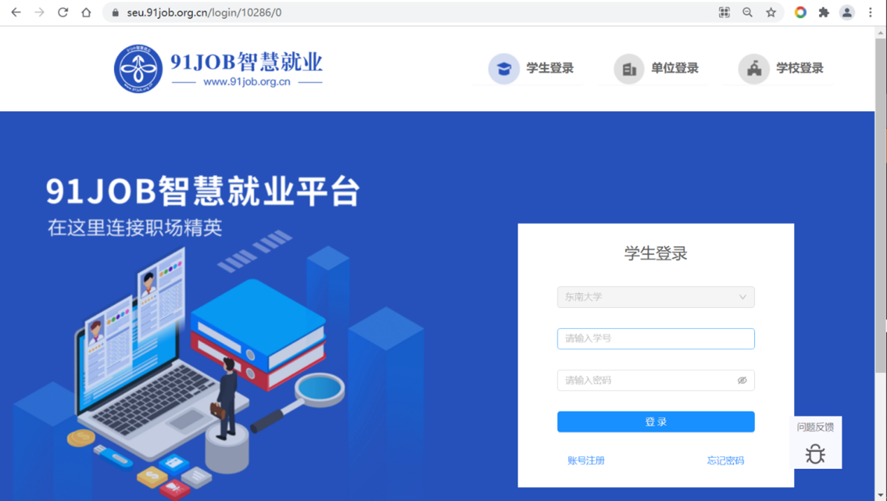 第一步:进入香港赛马会投注站 就业信息网//seu.91job.org.cn,点击学生登录,进入登录界面。
