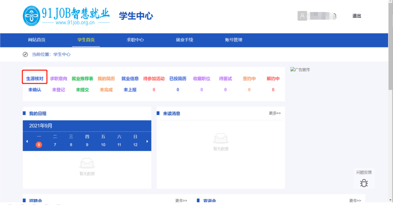 第三步:登录进入后,点击生源核对: