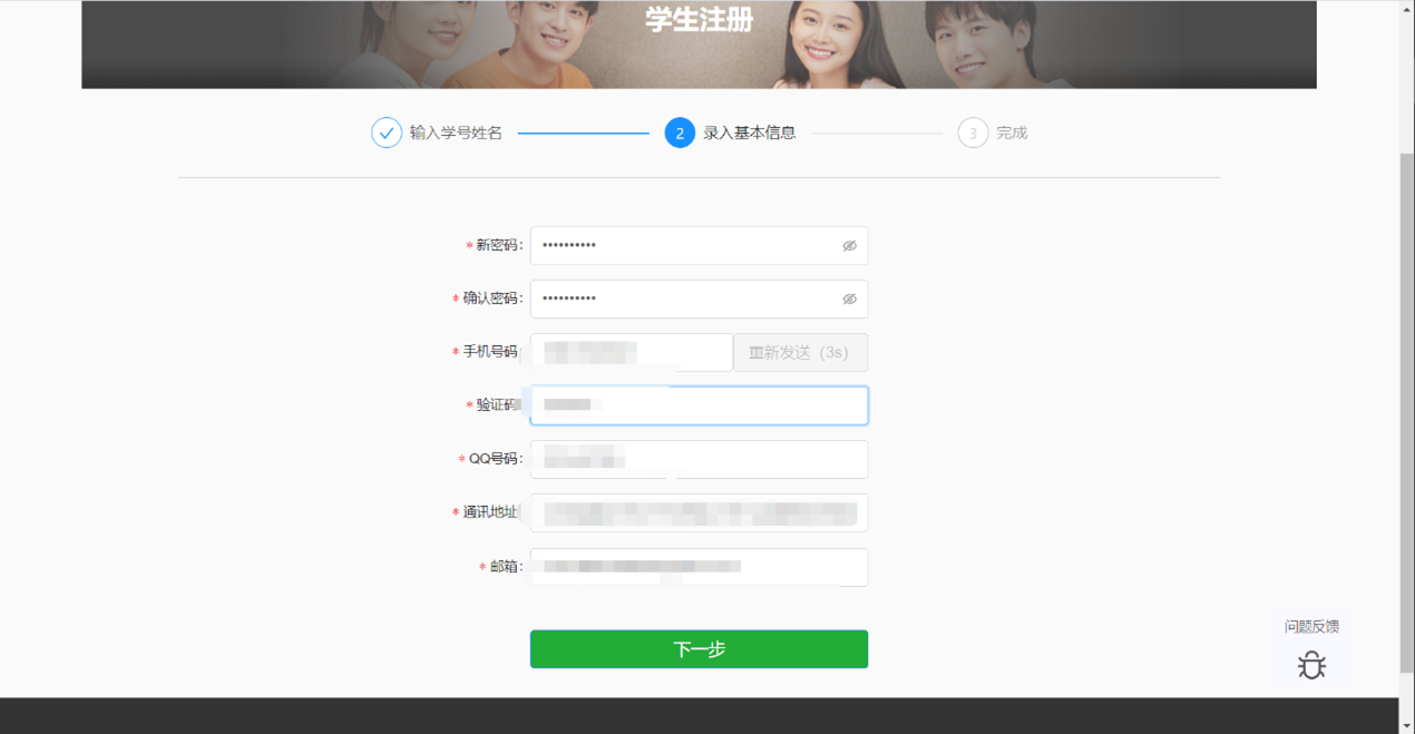 输入学号姓名后,录入进本信息即可完成注册。