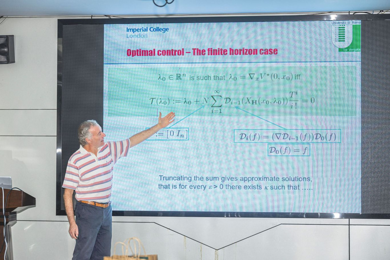 上午10:00,Alessandro教授在中心楼201会议室(教育部重点实验室会议室)作题为 “Pontryagin meets Bellman: on combining Pontryagin’s Principle and Dynamic Programming”的学术报告。报告中,Alessandro教授首先回顾了Pontryagin最优性原理与动态规划方法在最优控制理论中的发展背景与数理基础,系统分析了两者在不同控制问题中的适用性与局限性。随后,他重点介绍了将两种方法相结合的最新研究进展,并展示了在非线性系统与网络控制中的应用实例。