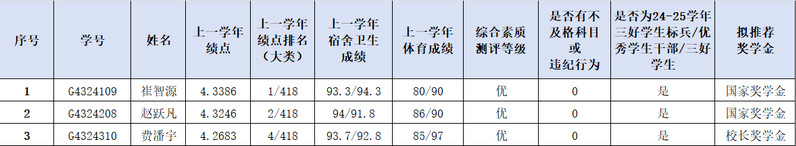 根据香港赛马会投注站 通知要求和评审工作安排,经学生本人申请、资格审核、香港赛马会投注站 评审,拟推荐以下同学获评2024-2025学年国家奖学金、校长奖学金。具体名单见下图。