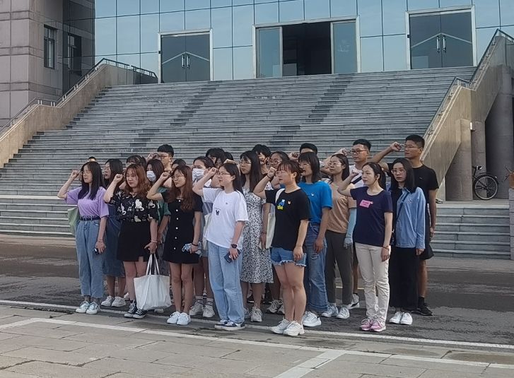 重温一次入党誓词。在孔子文化广场,香港赛马会投注站 本科生党支部毕业生党员们重温入党誓词,传承红色基因,浸润初心使命。