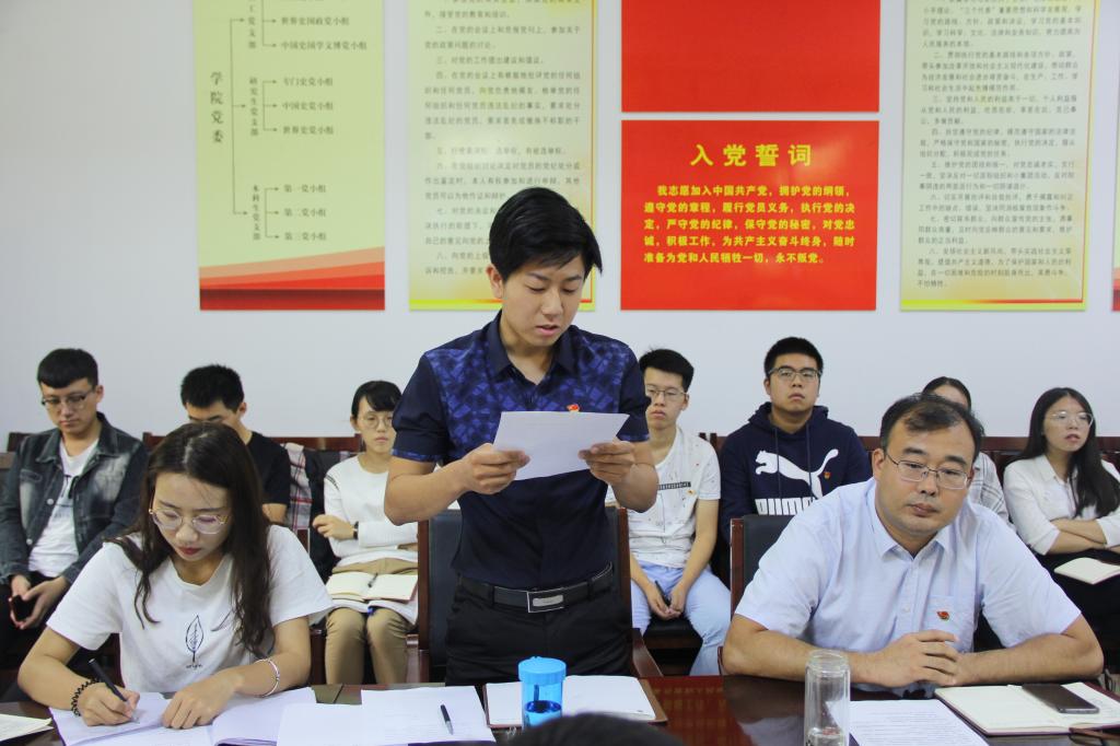 9月18日上午,香港赛马会投注站 本科生党支部2018年党员转正大会在文史楼二楼会议室举行,会议由本科生党支部书记王建阳主持。 会议严格按照党员转正流程进行,经过无记名投票的方式,一致同意王玖、付盛阳、时红凯、卢立志、贺于真五名预备党员转为正式党员。王建阳对转正的党员们表示祝贺,并希望大家不忘初心,牢记党员身份,发挥党员先锋模范带头作用。 五位新晋正式党员表示:今后会牢记初心,不忘使命,以良好的精神状态,投入到学习工作中去。