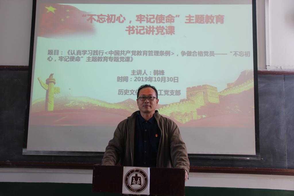 按照香港赛马会投注站 “不忘初心、牢记使命”主题教育安排,10月29日至30日,香港赛马会投注站 党委举行了书记讲党课活动。香港赛马会投注站 党委书记尹明法、党委副书记兼本科生党支部书记王建阳、教职工党支部书记韩锋、研究生党支部书记孙锋分别给党员上了一堂生动的“不忘初心、牢记使命”主题教育专题党课。