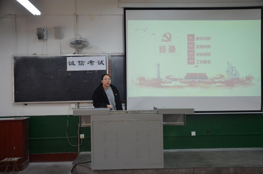 高越同学带领大家学习了十九届四中全会的主要内容,介绍了我国国家制度和国家治理体系的显著优势、坚持和完善中国特色社会主义制度、推进国家治理体系和治理能力现代化的总体目标和工作要求。随后,王建阳对党员和入党积极分子提出要求,希望同学们不忘初心、牢记使命,充分发挥党员的先锋模范作用。