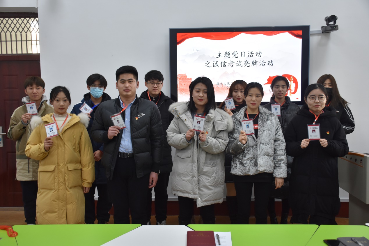 本科生党支部“我是党员,我带头”诚信考试亮牌活动从2017年开始启动。活动中,由刘贤贤同志为同学们发放诚信考试卡牌,并号召全体党员同志在考试过程中主动出示卡牌,始终坚守诚实守信的优秀品德,诚信考试,努力营造公平公正诚信的考试风气,为同学们做好榜样,充分发挥党员的模范先锋作用。