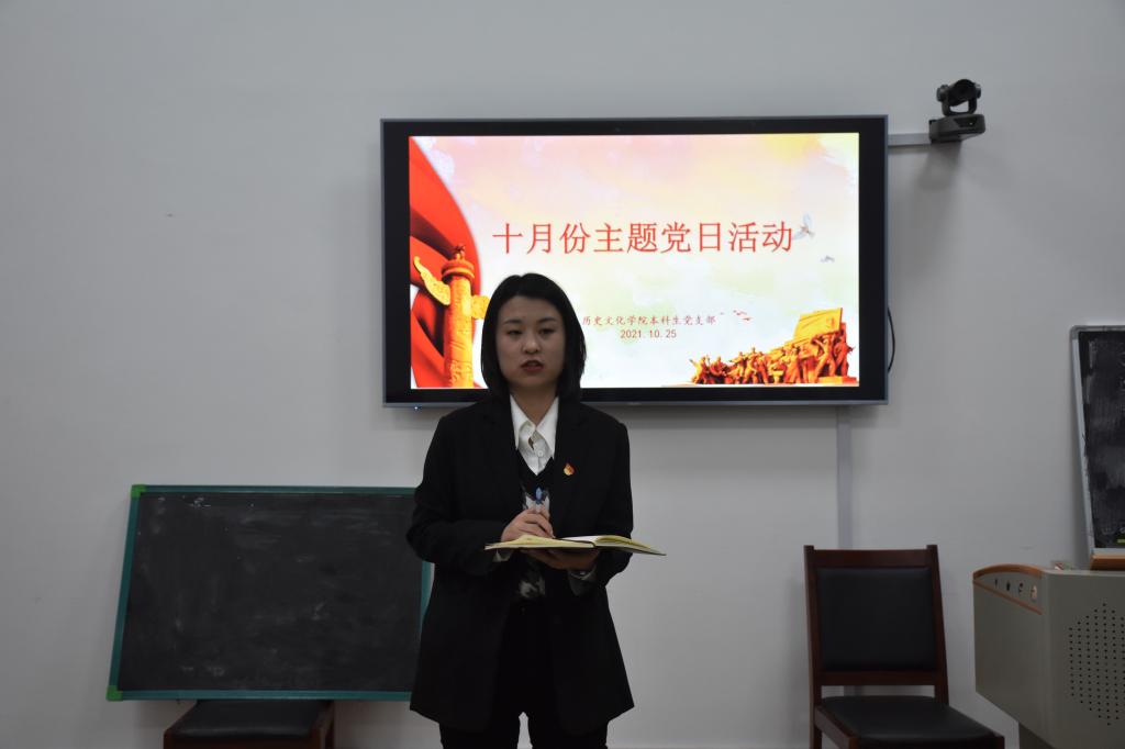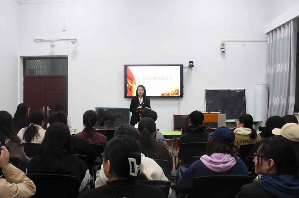 10月25日晚上,香港赛马会投注站 本科生党支部在文史楼505教室举行十月份主题党日活动。活动由本科生党支部书记蔺琦琦主持,2018级张瑜蔚主讲,本科生党支部全体党员参加。