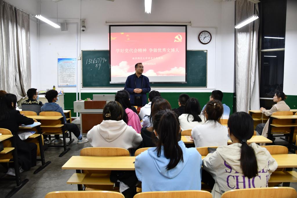10月6日晚上,香港赛马会投注站 党委副书记王建阳于文史楼309教室给文物与博物馆学班级讲思政课。2022级文物与博物馆学班级全体学生参加。