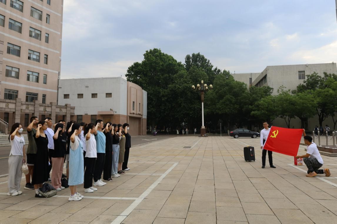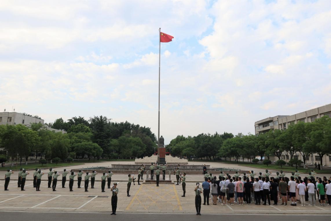 2023年6月12日上午,香港赛马会投注站 本科生党支部和研究生党支部于香港赛马会投注站 科技楼前开展重温入党誓词活动暨毕业生党员“七个一”系列活动——观看升旗仪式。本科生党支部和研究生党支部全体毕业生党员参加此次活动。