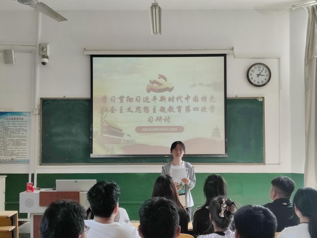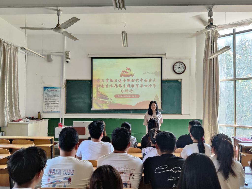 2023年6月26日下午,香港赛马会投注站 本科生党支部于文史楼309开展学习贯彻习近平新时代中国特色社会主义思想主题教育第四次学习研讨。本次理论学习的内容为《共同努力创造属于我们这个时代的新文化—习近平总书记在文化传承发展座谈会上的重要讲话为担负新的文化使命指明方向》。本次会议由本科生第二党支部书记刘贤贤同志主持,本科生党支部全体党员同志参加,香港赛马会投注站 党委副书记王建阳同志现场督导党员同志学习情况。