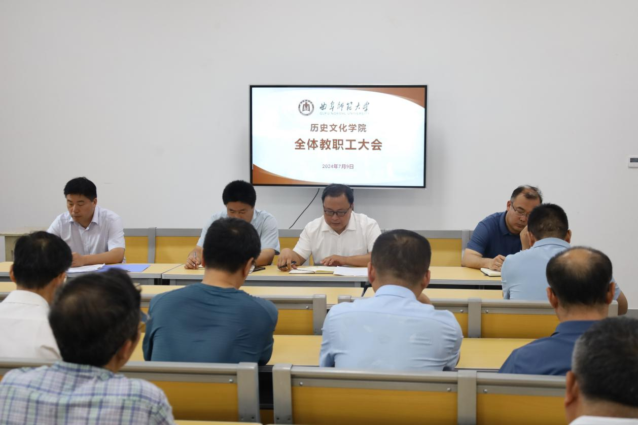 领导班子成员首先对上年工作进行了总结汇报,并分别部署安排了暑期及下学期的重点工作。吕厚轩就研究生培养方案修订、非全日制硕士生暑期教学工作、研究生就业和研究生开题等重点工作进行安排部署;王京传对教学工作、科研工作、人才引进、开源创收和中国史高水平学科课程思政项目验收工作等重点工作进行安排部署;姜开勇传达了全省暑期安全工作会议和全校高质量就业总结部署会议、暑期工作会议和二级单位年度目标任务考核会议精神,并对专业技术人员中期考核成果信息录入、意识形态、安全稳定、公务用车、政治理论学习、假期值班、进一步做好2024届毕业生就业等工作进行了强调与部署。