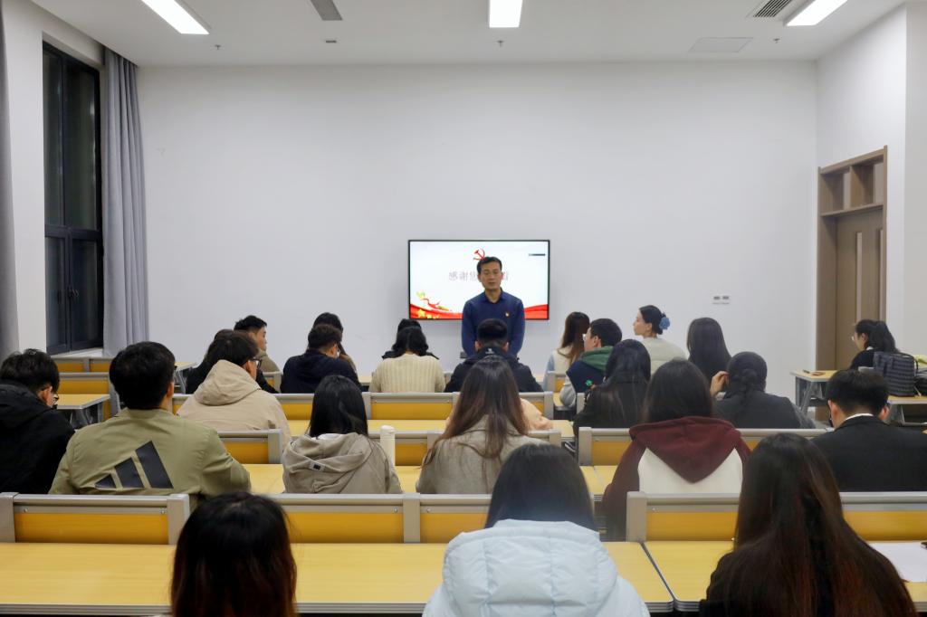 2024年11月15日下午,香港赛马会投注站 研究生第一、二、三党支部在孔子书院B106教室联合开展了11月份主题党日活动。活动由研究生第一党支部书记孙锋主持,研究生党支部全体党员通过线上线下相结合的方式参加了本次活动。
