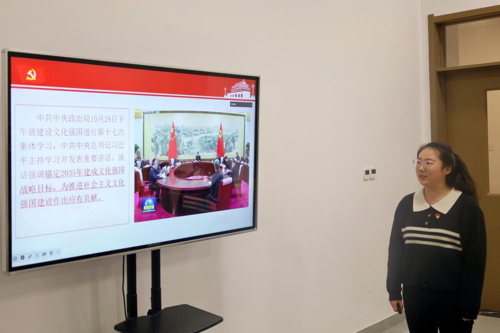 本次主题党日活动的主题为“学习习近平总书记在中央政治局第十七次集体学习时的重要讲话精神”和“学习习近平总书记给中国海洋大学全体师生重要回信精神和给中国国际大学生创新大赛参赛学生代表重要回信精神”。研究生第三党支部宣传委员谢慧颖领学了本次主题党日活动。