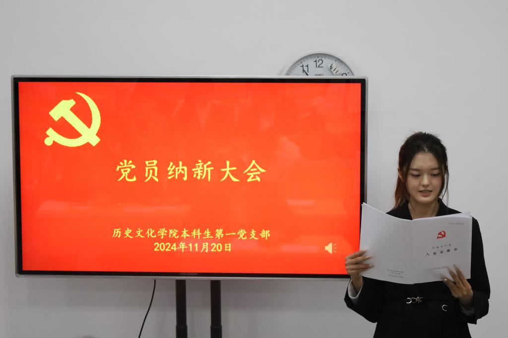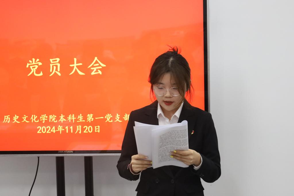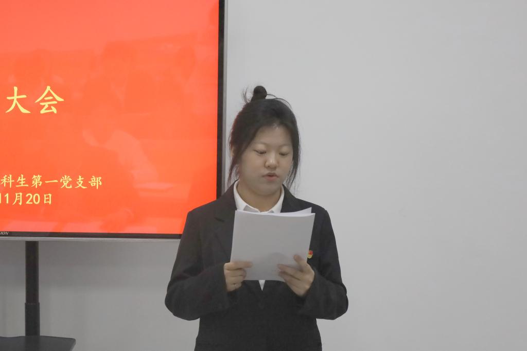 11月20日下午,香港赛马会投注站 本科生第一党支部于孔子书院B104教室召开党员纳新大会。大会由支部书记王建阳主持。
