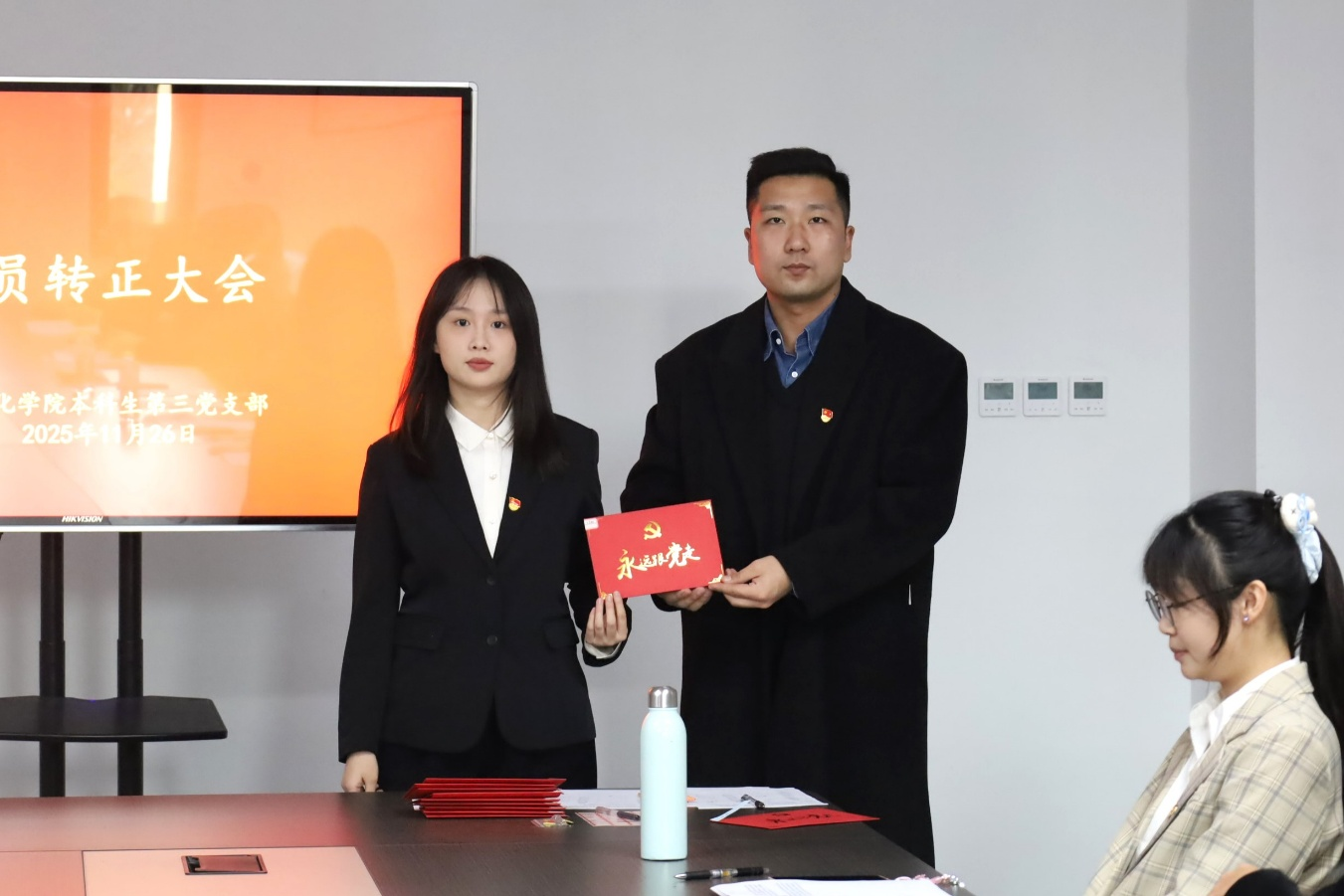 2025年11月26日下午,香港赛马会投注站 本科生第三党支部于孔子书院A207教室召开党员转正大会和党员纳新大会,会议由本科生第三党支部书记董经同志主持,本科生第三党支部全体党员参加。