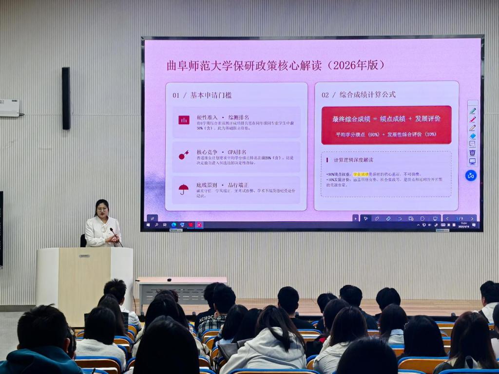 活动开始前,与会党员和参会同学集体学习了《求是》杂志2026年第5期《习近平:让愿担当、敢担当、善担当蔚然成风》文章。高凯月同志以《学习保研政策,做好保研准备》为题,从保研政策解读、科学系统备考等方面系统介绍了推免保研的准备情况。李琪同志以《研途有你、未来可期——一个过来人的实战复盘与心路历程》为题,从专业选择、院校定位等方面系统介绍了跨专业考研的准备情况。党支部副书记、班级辅导员闫浩做总结点评,希望同学们珍惜学习机会,系统科学复习备考,提前做好学业规划,用实际行动度过更加充实且有意义的大学生活。