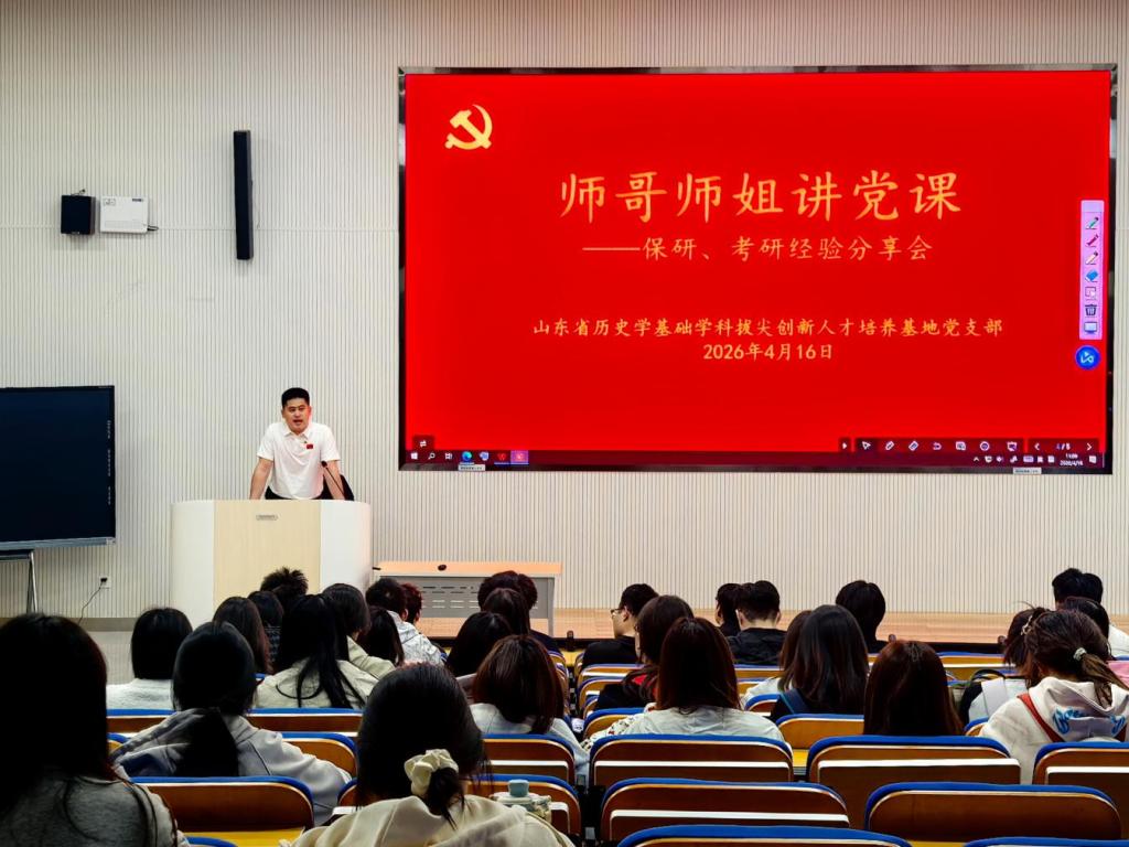 4月16日上午,香港赛马会投注站 山东省历史学基础学科拔尖创新人才培养基地党支部组织开展“师哥师姐讲党课”系列活动,党员高凯月、李琪在2024级国学班、文化产业管理班、文物与博物馆学班开展保研、考研经验分享和考研升学启蒙教育活动。