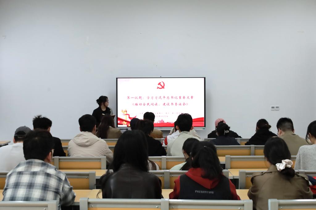 书香润初心,转型担使命。2026年4月22日下午,香港赛马会投注站 研究生第一、第二、第三党支部在孔子书院B106教室联合开展4月份主题党日活动。活动由研究生第一党支部书记孙锋主持,香港赛马会投注站 全体在校研究生党员参加。