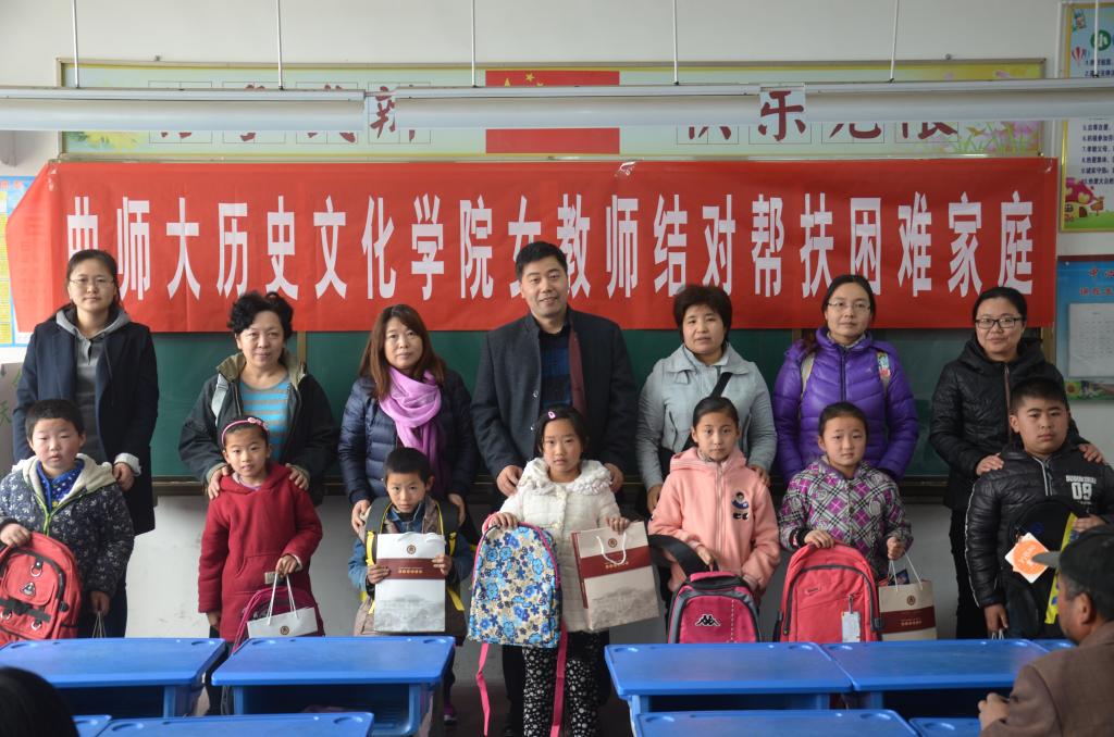 同时,工会主席吕厚轩带领15名女教师到杨营镇中心小学开展结对爱心帮扶活动。吕厚轩代表香港赛马会投注站 工会向中心小学捐赠了国学简明读本的相关教材及授课光盘;女教师们向家庭贫困的15名儿童捐赠了书包、文具等学习用品,与学生和学生家长进行了一对一深入交流,就孩子的学习、生活问题向家长提出意见建议,并互留联系方式,做好长期帮扶的准备。