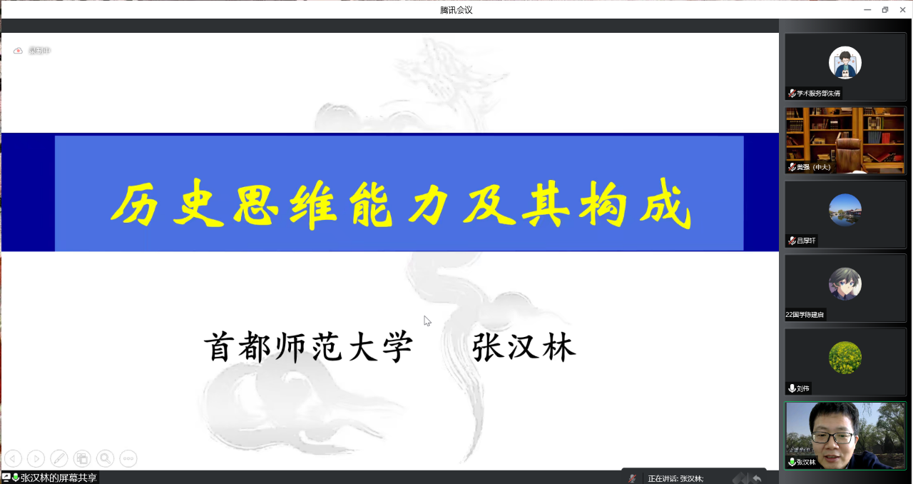 2022年11月10日上午10点,首都师范大学教师教育香港赛马会投注站 教授,博士生导师,北师大中国教育创新研究院历史学科首席专家张汉林作客“洙泗讲堂”,通过腾讯会议为香港赛马会投注站 师生作了题为《历史思维能力及其构成》的学术讲座。讲座由吕厚轩副教授担任主持人,刘伟教授担任与谈人,香港赛马会投注站 相关专业师生及线上来自全国各地的听众共300余人参加了此次活动。 讲座从历史思维与哲学思维、科学思维、艺术思维的横向对比中展开,张教授认为历史思维能力等于用历史思维解决问题的能力,他指出:历史学科能力即历史思维能力,关注和理解历史思维能力是学科历史和历史教学实践中不可忽视的重要问题。 张教授随即从三个维度做了阐释:其一,历史时序思维的培养 要求我们在时序中思考,需要根据当时历史环境思考,从当时人所处的历史情境,所欲解决的问题出发,进行同情的理解和跨世代的对话。同时历史思维的时间还指向未来,对过去的思考也是对未来筹划。 其二,历史思维具有批判性 历史研究建立在史料的基础上,但不能轻信史料,而是需要抱着谨慎的态度仔细地考证,在众多的史料中去伪存真,去粗求精。张教授引用《商君书》中商鞅变法的例子说明了理解材料要返回原文,结合材料的上下文,才能把握事件发展的来龙去脉,形成更深刻的理解。 其三,历史思维能力的教育底蕴 张教授以从不同角度观察半杯水为例子,指出历史思维不同于科学思维,艺术思维,和哲学思维,是历史学科独有的思维方式,是对世界的经验的理解。而历史思维能力则更具体,是思维主体在思维活动中的实际表现。张教授结合学科历史和历史教学的实际情况,认为培养学生的历史思维能力要求不必过高,而应以“应知必会”为标准,让学生体验历史知识是如何生产出来的,要淬炼学生思维的明晰性和批判性。 刘伟教授在总结时,高度评价了张教授所做的报告,认为精彩、全面、权威,其本人也收获颇丰。对教学实践和教学研究都十分有价值。在互动环节,张教授针对听众提出的“历史不能假设角度下如何体现批判性思维”问题进行解答,同学们受益匪浅。至此,本次讲座圆满结束。