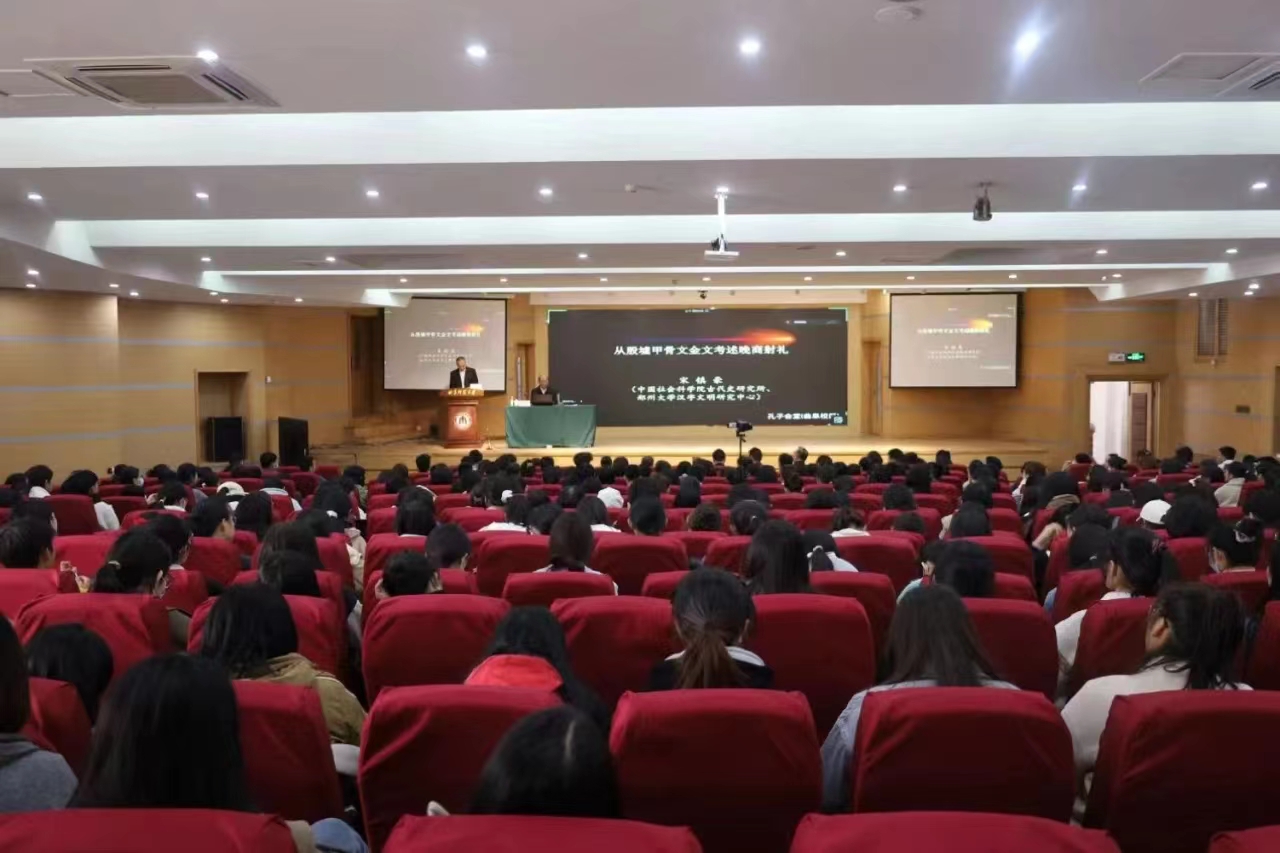 3月15日下午,郑州大学甲骨学科首席教授、博士生导师宋镇豪教授做客“洙泗讲堂”,为全校师生作了题为《从殷墟甲骨文金文考述晚商射礼》的学术讲座。讲座由香港赛马会投注站 副校长李兆祥教授主持,刘伟教授、张俊成副教授担任与谈人,300余名师生齐聚孔子会堂参加了此次活动。