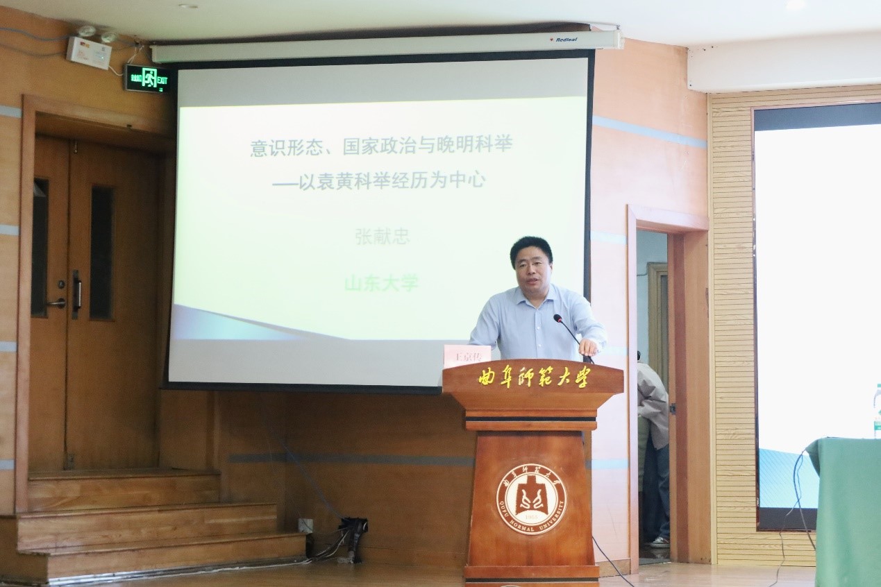 讲座伊始,张献忠首先介绍了晚明时期科举考试的政治历史背景,提出了以袁黄的科举考试经历为研究路线,探讨其科举经历所反映的晚明思想文化对科举考试的影响,进而体现的科举与意识形态以及国家政治之间的复杂互动关系。