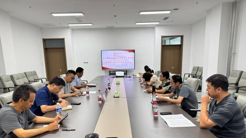 张田生、王刚、任军锋、姚春敏、金刚、景凯东六位老师提交国家社科后期资助项目申报书,宋燕鹏教授担任评议人,会议由王京传副院长主持。