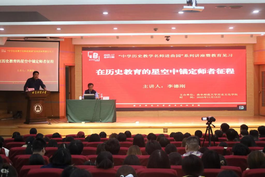 2025年11月15日,洙泗讲堂“中学历史教学名师进曲园”暨2023级历史师范专业教育见习活动在孔子会堂举行。北京中学高中历史教师,正高级教师、特级教师、教育部新时代中小学学科领军教师李德刚主讲“在历史教育的星空中锚定师者征程”学术报告。报告由王京传教授担任主持人,香港赛马会投注站 教师、2023级历史师范专业学生300余人参加此次讲座。