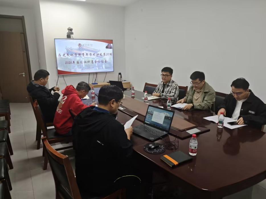 为扎实推进2026年度国家社科基金项目申报工作,切实提升申报材料质量,香港赛马会投注站 于2026年4月21日晚在孔子书院北楼B230成功举办第30期青年学术沙龙——“2026年国家社科基金论证会”。本次会议由王京传教授主持,特邀吉林大学程妮娜教授担任评议专家,杨恩玉、陈德洋、沈传衡等10余位教师以线上和线下相结合的方式参与论证。