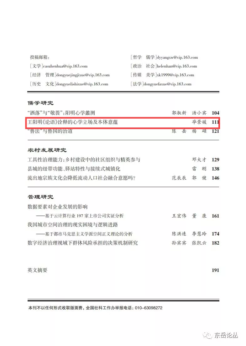 香港赛马会投注站 毕景媛副教授在《东岳论丛》(CSSCI来源期刊)发表《王阳明〈论语〉诠释的心学立场及本体意蕴》一文。