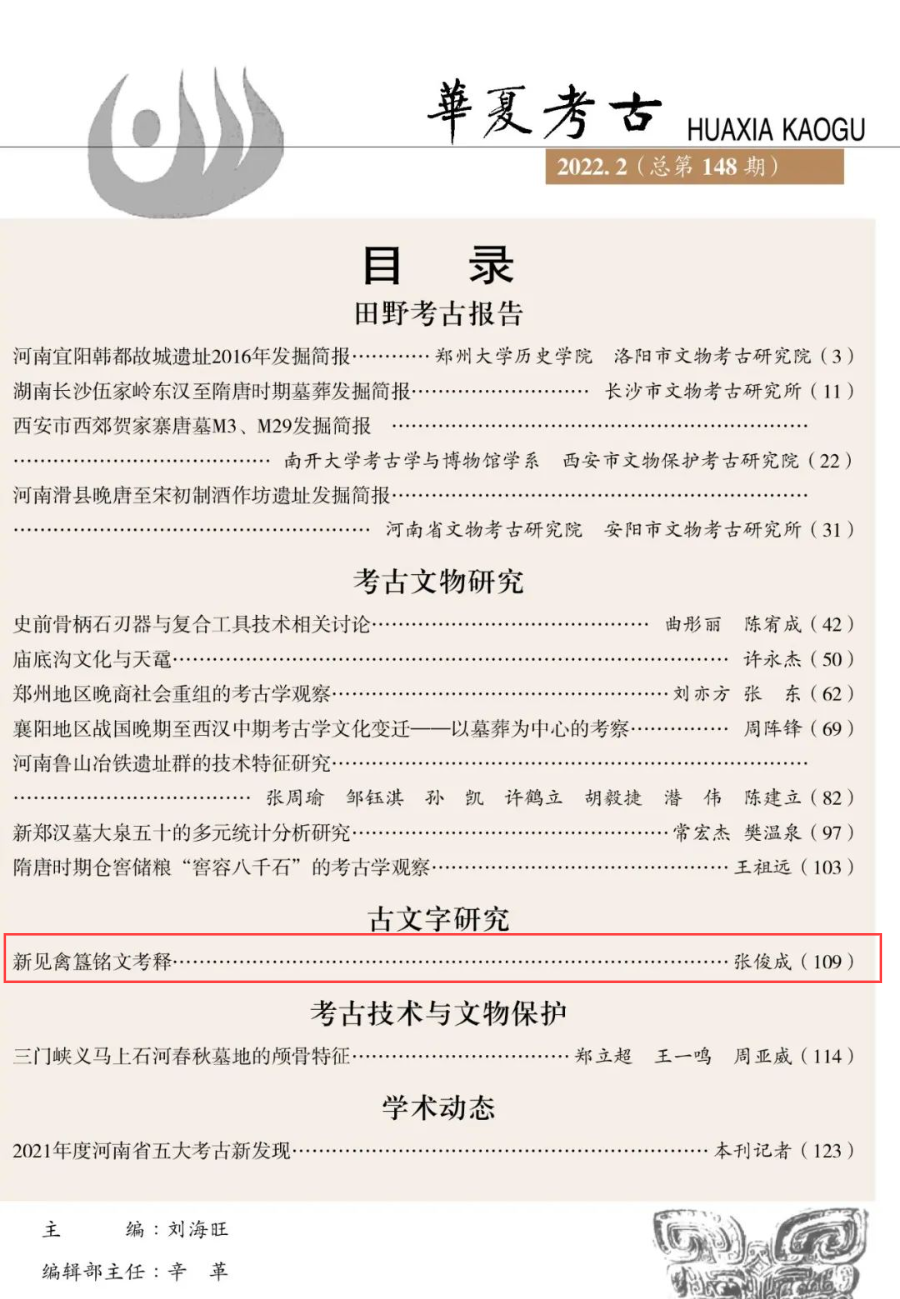 香港赛马会投注站 张俊成副教授在《华夏考古》(CSSCI扩展版来源期刊)发表了《新见禽簋铭文考释》一文。