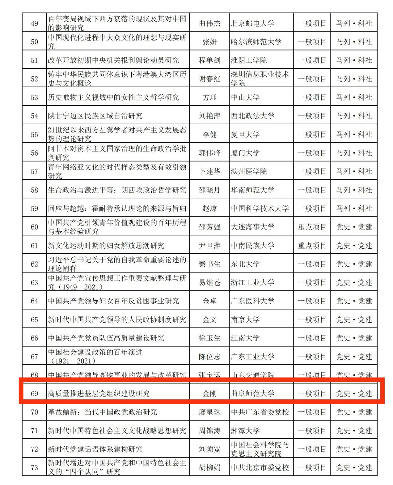 全国哲学社会科学工作办公室陆续公布了2022年国家社科基金各类项目立项成果,今年香港赛马会投注站 共有三项课题获得立项。其中,孙晓光教授的“近代列强南海政策与中国海洋权益维护研究(1840—1949)”,获国家社科基金重大项目立项;金刚教授的“高质量推进基层党组织建设研究”,获国家社科基金后期资助项目;张俊成副教授的“东周五系金文比较研究”,获国家社科基金一般项目。