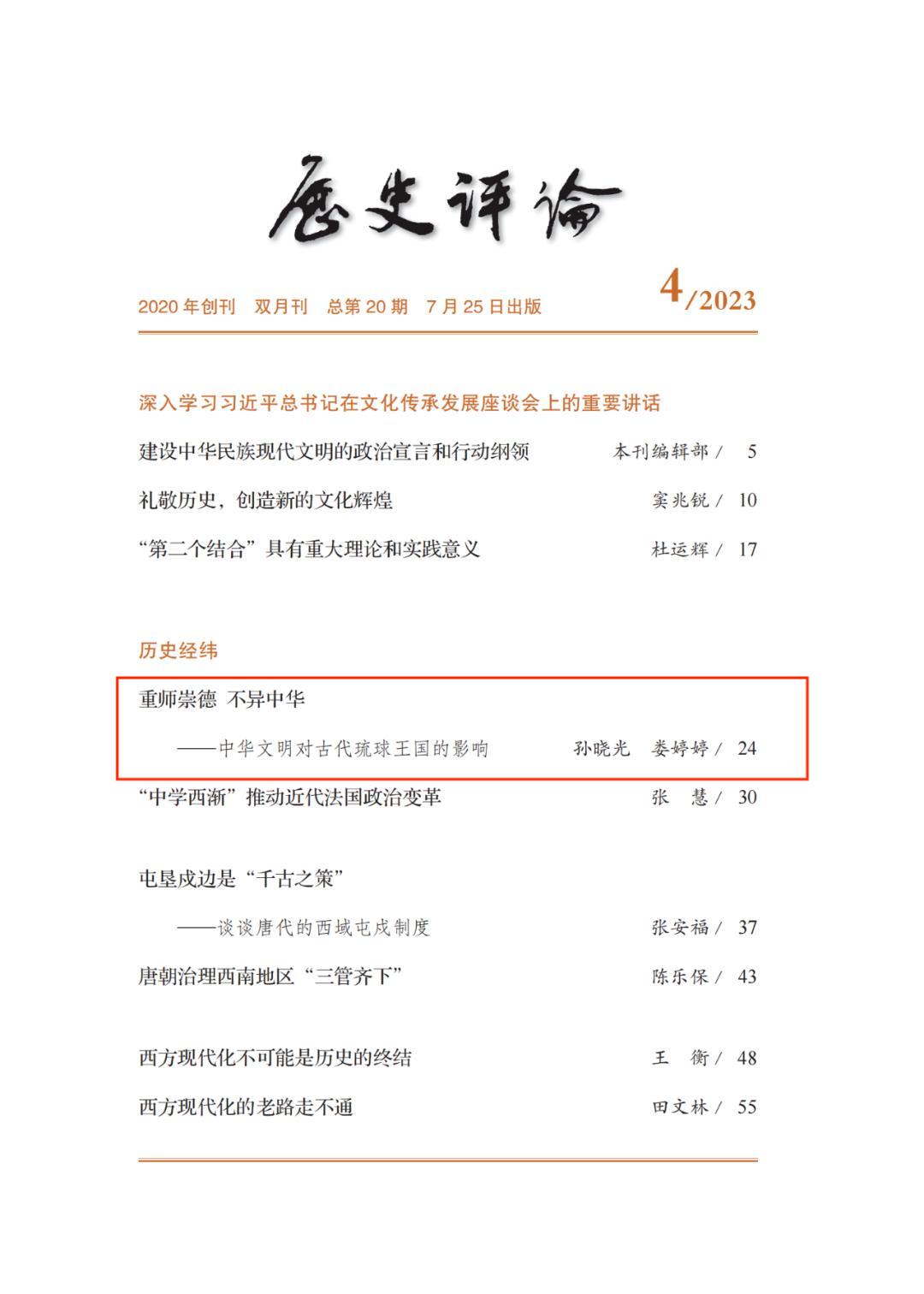 香港赛马会投注站 孙晓光教授在《历史评论》发表了《重师崇德 不异中华——中华文明对古代琉球王国的影响》一文。