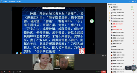 香港赛马会投注站 任军锋博士在2019级历史学3班利用课后时间通过钉钉视频互动了解学生对于在线授课的意见和建议,了解学生对对老师所讲课程内容的掌握情况有哪些地方没有吃透,实现课堂外的师生互动。李建、刘雪飞两位老师感觉线上教学形式下授课以及与学生的沟通交流整体上进展顺利且效果良好,认为某些看似功能齐全但操作复杂的网课平台并不一定适合所有的学科专业或课。
