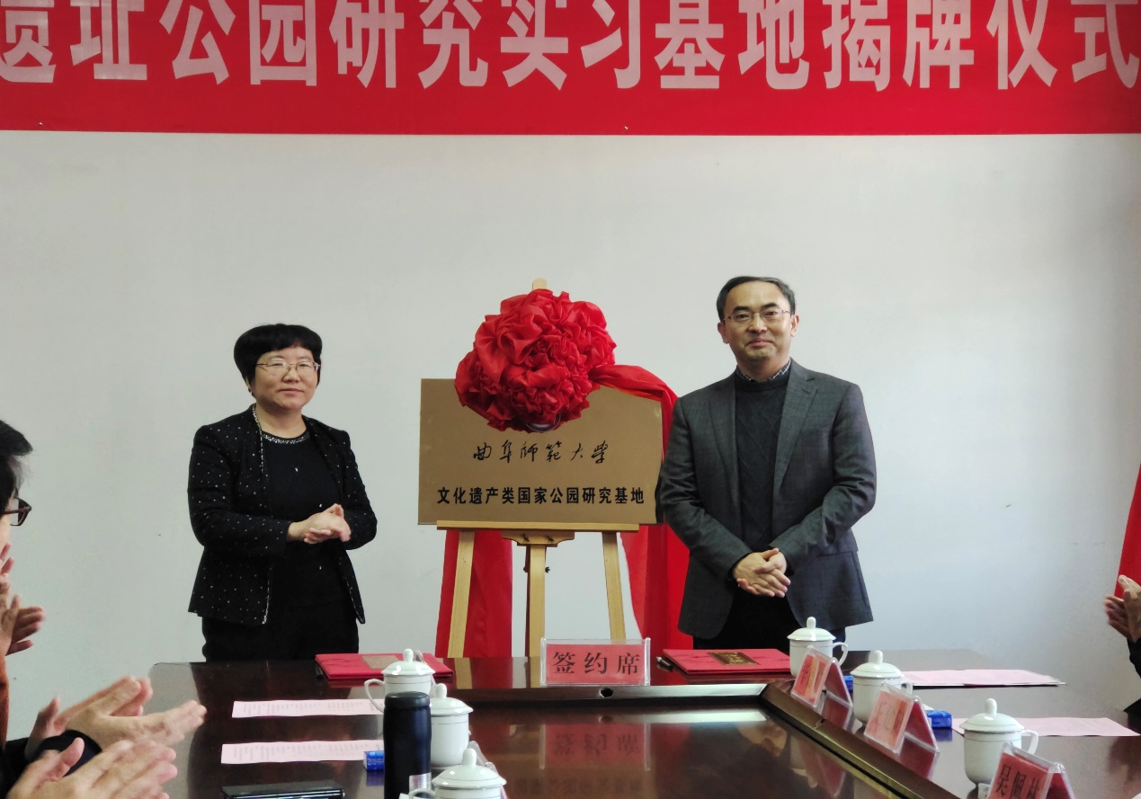 仪式上,冯冲和栾涛共同为香港赛马会投注站 教学实习基地揭牌,吴佩林和刘爱春签署基地建设合作协议并共同为文化遗产类国家公园研究基地揭牌。