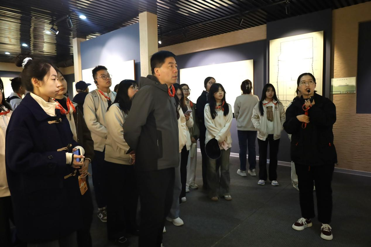 铜雀台、金凤台、冰井台,这组东汉末年邺城的标志性建筑,是曹魏政权政治、军事、文化格局的物质缩影,也是中国古代台榭建筑的经典遗存。在讲解员的专业引导下,师生们逐一考察三台遗址的建筑遗存、碑刻文物与空间布局。在遗址展厅内,师生们结合图文展览与实物遗存,系统梳理邺城的城市规划逻辑、三台的多元功能,以及其在三国至南北朝时期的历史地位演变,实地考察让“邺城遗址”从书本上的抽象概念变得可感可触。活动尾声,师生们在遗址庭院中交流感悟,将实地观察与学术思考相融合,为同学们后续的史学研究、论文创作积攒了鲜活的第一手素材。