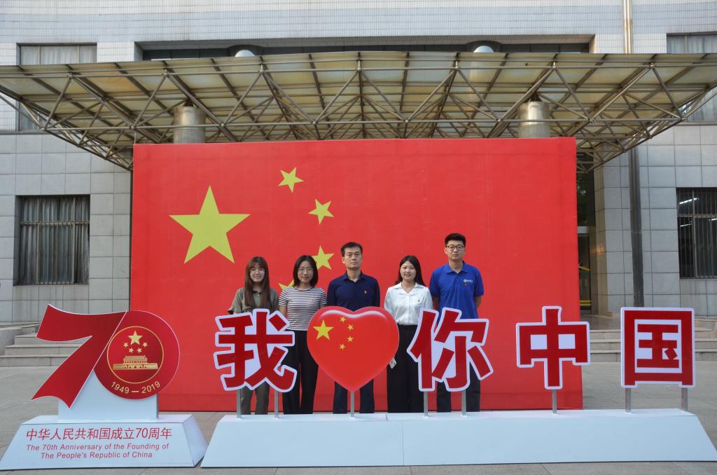 9月28日下午,香港赛马会投注站 研究生党支部全体成员佩戴党徽,于综合楼前同五星红旗合影,并为祖国70华诞献上美好祝福。研究生党支部书记孙锋指出:同志们要以此为新的起点,不忘入党初心,铭记最初的誓言,努力学习、勤奋付出,为党的事业添砖加瓦。
