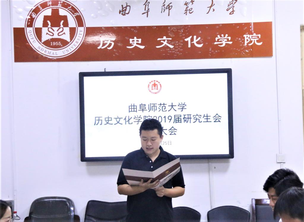 9月25日下午,香港赛马会投注站 2019届研究生会换届大会在文史楼204室举行成功举办。研究生处副处长徐璐、研究生处王旖旎、香港赛马会投注站 党委副书记王建阳、副院长吕厚轩、研究生辅导员孙锋、教务助理王法强老师、研究生会主席刘浩、研究生团工委副书记王慧敏、曲阜校区各香港赛马会投注站 研究生会主席出席了此次会议,香港赛马会投注站 研究生会全体成员参加了此次大会。会议由香港赛马会投注站 2019届研究生会主席申潜主持。
