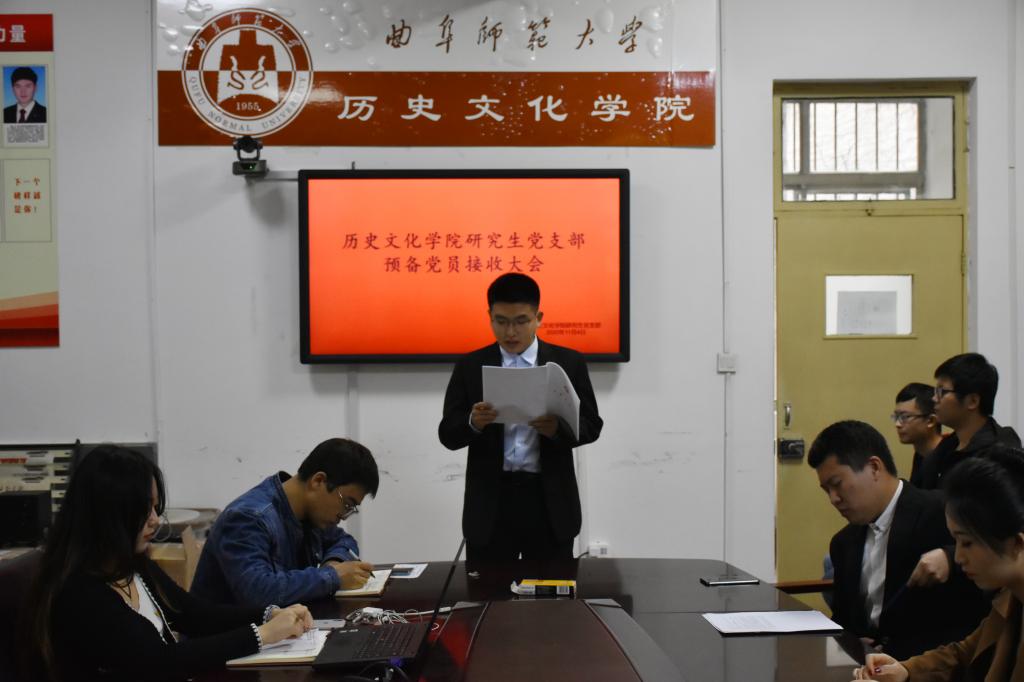 11月4日下午4点,香港赛马会投注站 研究生党支部在文史楼二楼会议室举行预备党员接收大会暨预备党员入党宣誓大会。支部党员与入党积极分子参加此次大会。