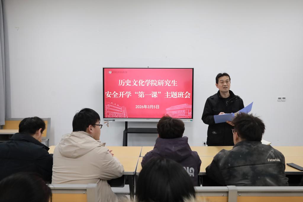 为筑牢校园安全防线,保障新学期各项工作平稳有序开展,2026年3月5日下午,香港赛马会投注站 在孔子书院B106教室成功举办研究生安全开学“第一课”主题班会。本次主题班会由研究生辅导员孙锋主讲,全体研究生参与。