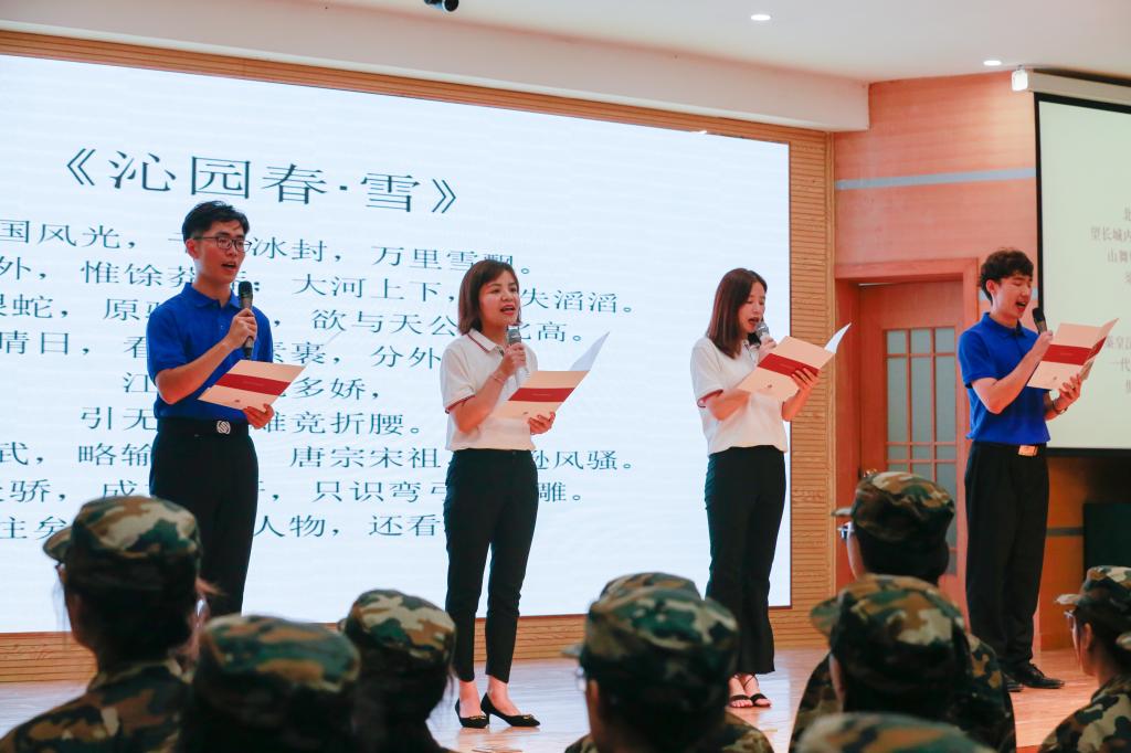 石璐、刘贤贤及全体新生齐颂毛泽东主席的经典诗词《沁园春·雪》,重温红色经典,传承英雄先烈的意志品质,唱出新时代青年人的最强音!