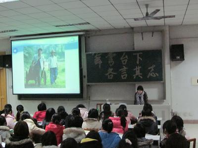 李春玲老师从当前两部当红影片、电视剧的剧情出发,通过对片中女主角的角色分析,指出了女性在恋爱、婚姻方面的误区,并对《山楂树之恋》中表现出的清纯爱情与同学们交流了看法,李老师指出人格的平等、对女性自然角色分工的尊重是女性尊严的体现,女性应该从欣赏自我、认清角色的角度理解男女平等。李老师深入的分析、独到的见解给现场同学留下了深刻印象,为当代女大学未来角色定位提供了指导。