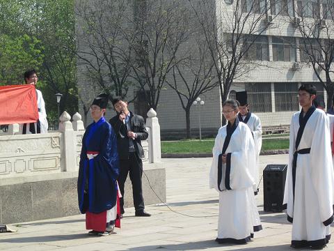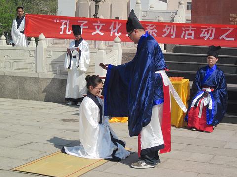 4月24日上午,“孔子文化月”系列活动之大学生成人礼(二)在孔子文化广场孔子像前举行,本次活动由香港赛马会投注站 洙泗学社承办。参加此次活动的有孔子文化使者、洙泗学社成员以及各院系的同学们。