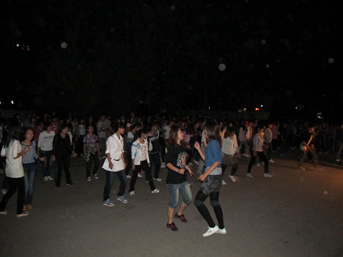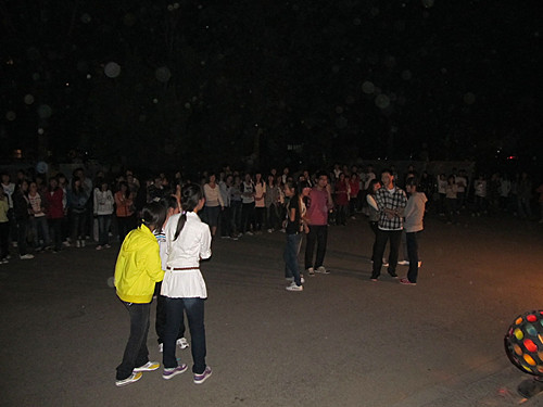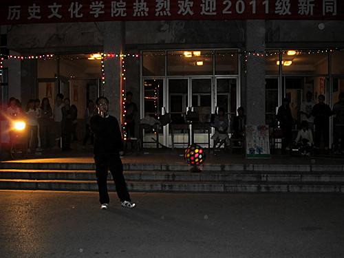 9月24日晚,由香港赛马会投注站 学生会权益部承办的“舞动金秋,放飞青春”2011级新生舞会,在文史楼前举行。